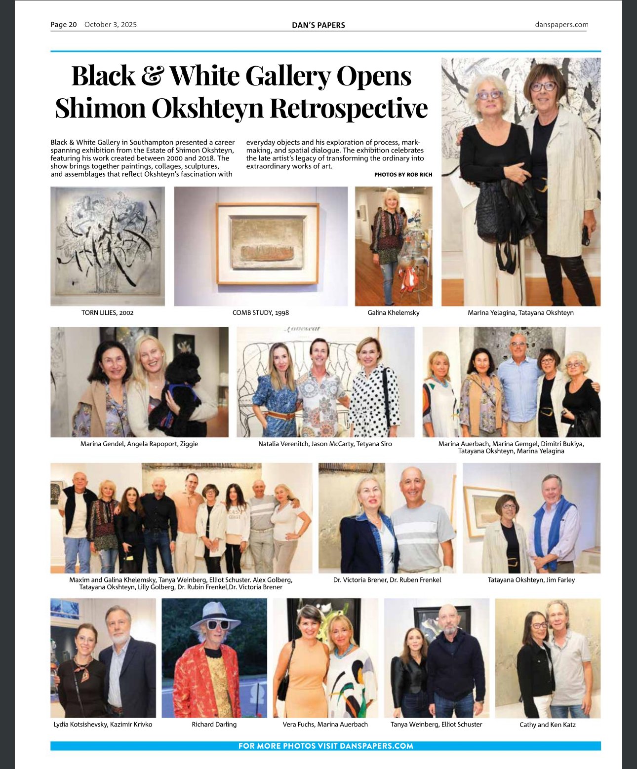 “OKSHTEYN'S STILL LIFES—OBJECTS WHOSE LIFE HAS BEEN STILLED—NOT ONLY EXPLORE THE BOUNDARY BETWEEN ORDINARY OBJECTS AND POETIC OBJECTS—NON-ART AND FOUND ART—BUT BETWEEN AESTHETICS AND EROTICS.”___Donald Kuspit, New York City.